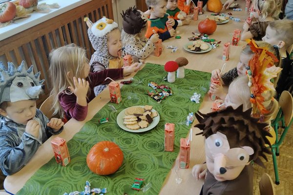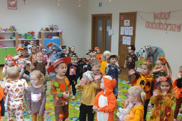 Dnia 23.10.2025 w grupach dzieci najmłodszych odbył się Bal Jesieni. Dzieci miały okazję zaprezentować swoje stroje na wybiegu oraz wspólnie zjeść słodki poczęstunek. Oczywiście nie zabrakło szalonych tańców i zabaw. Dzieci w czasie zabaw miały okazję zapoznać się z mieszkańcami lasu, utrwalić charakterystyczne oznaki Jesieni oraz dominujące kolory tego okresu.