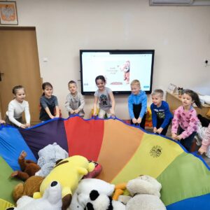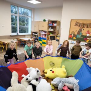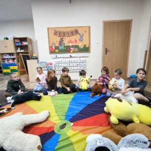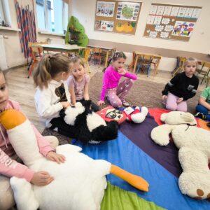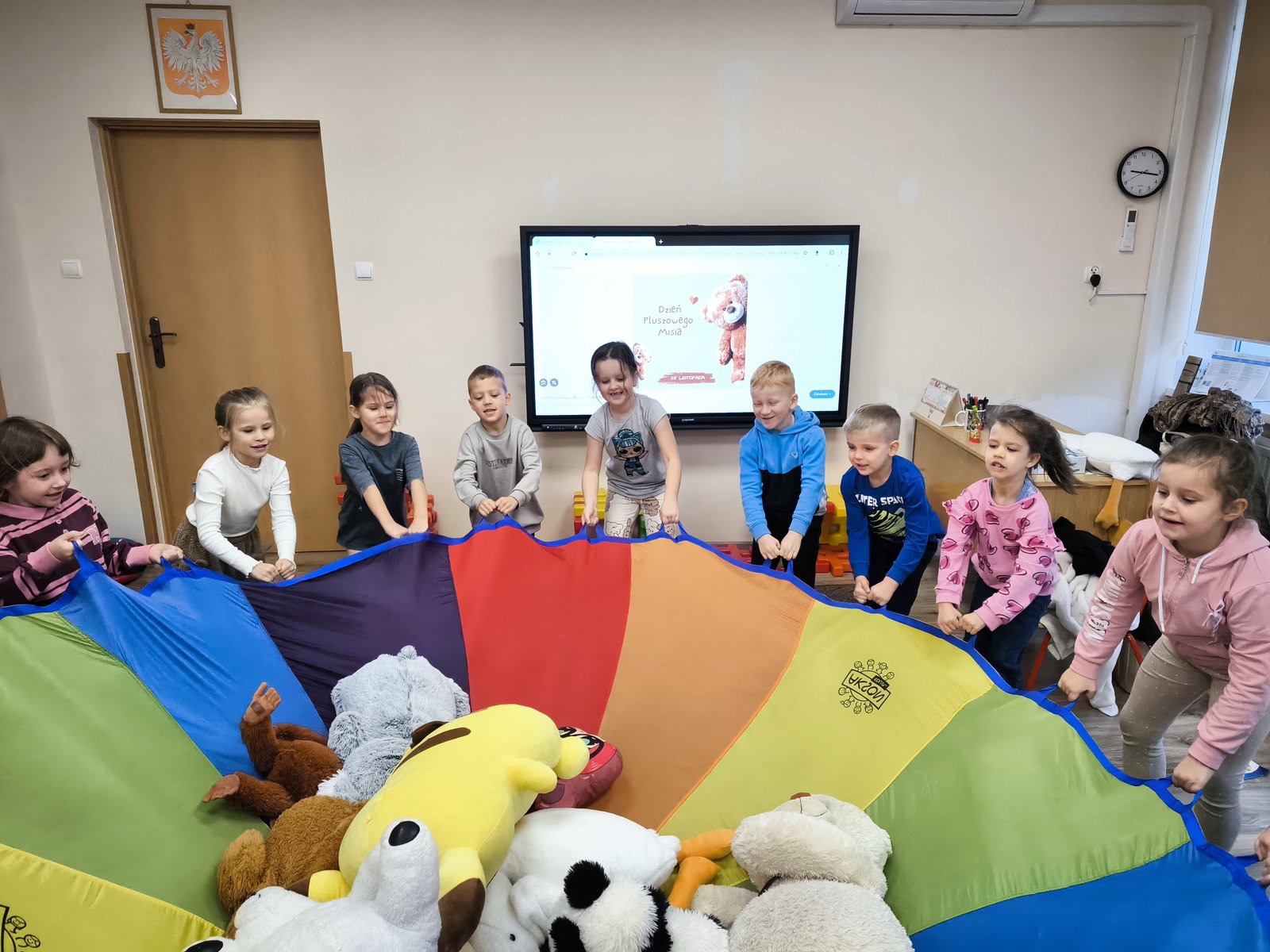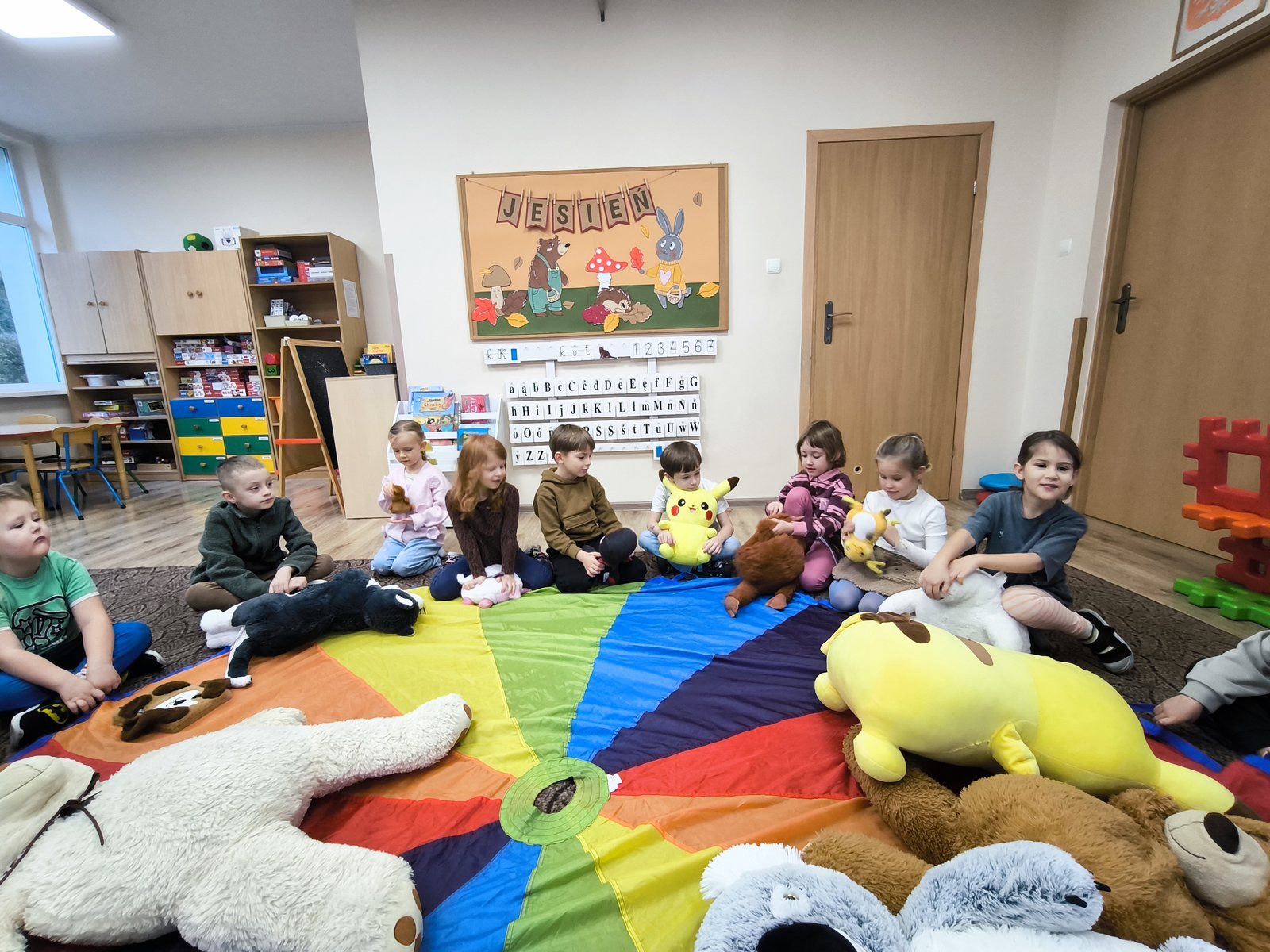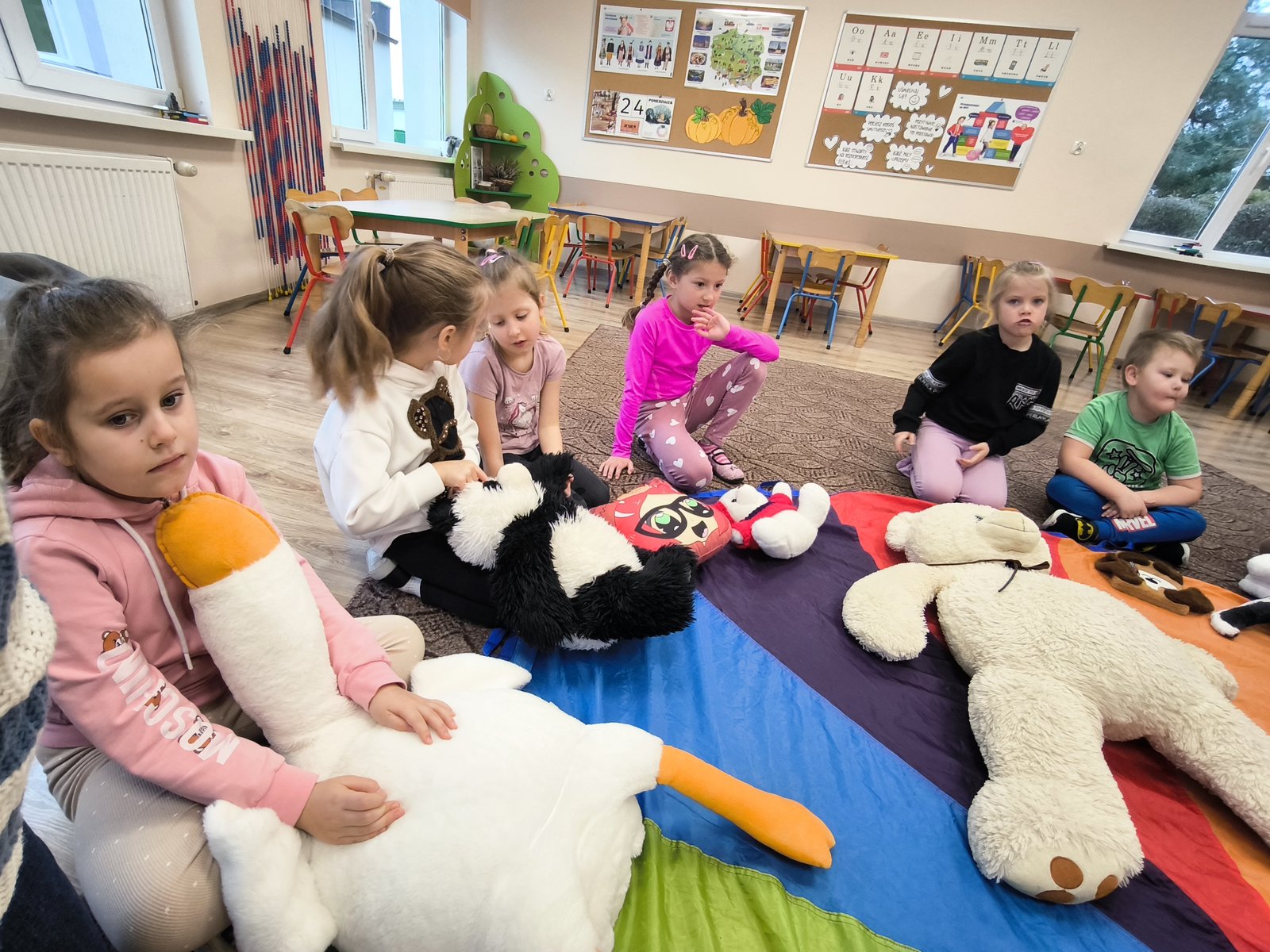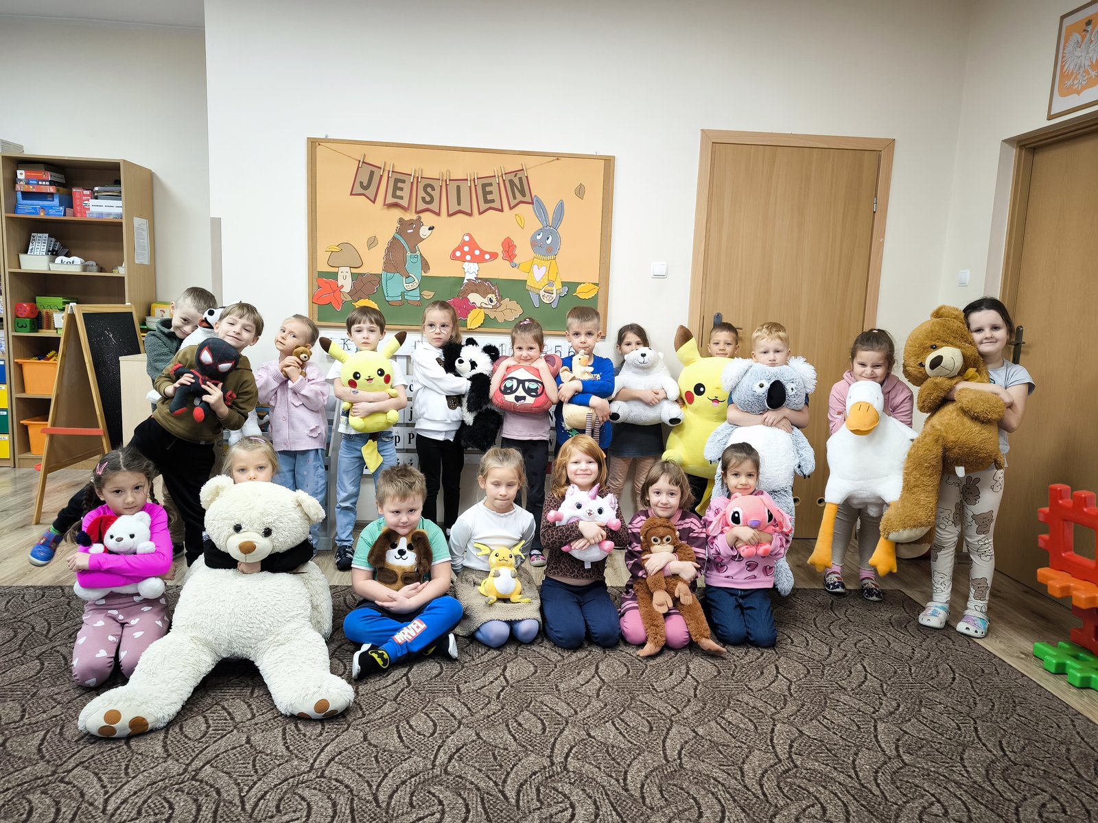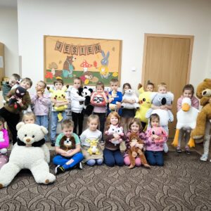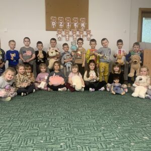 W przedszkolu obchodziliśmy Dzień Pluszowego Misia. Każde dziecko przyniosło swojego ulubionego pluszaka i opowiedziało o nim kilka słów. Wspólnie bawiliśmy się przy misiowych piosenkach, oglądaliśmy bajki o misiach i wykonywaliśmy prace plastyczne – kolorowe portrety swoich pluszaków. Na koniec zrobiliśmy pamiątkowe zdjęcie z wszystkimi misiami. Dzieci spędziły dzień w radosnej, przytulnej atmosferze.