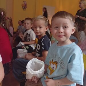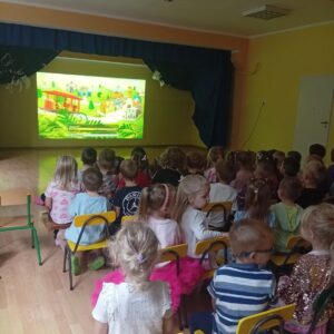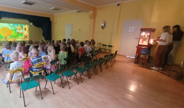 Na sali gimnastycznej czekała na dzieci niespodzianka – kino i popcorn!