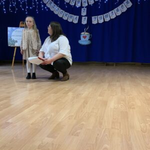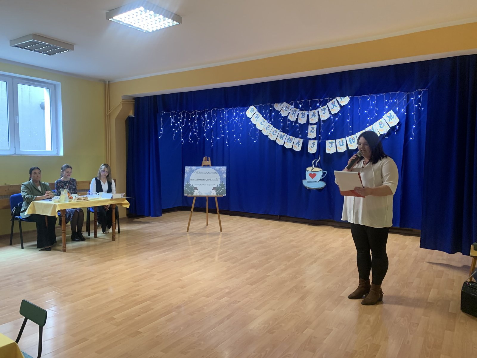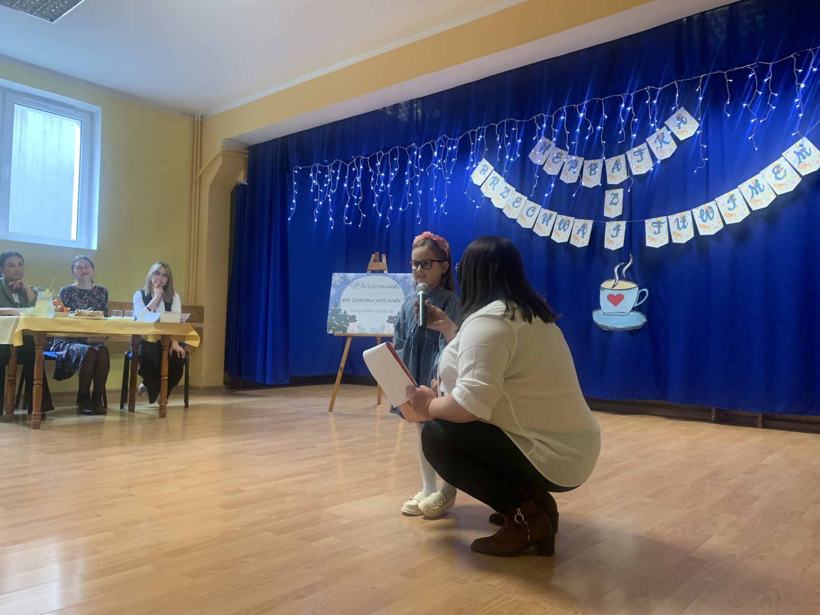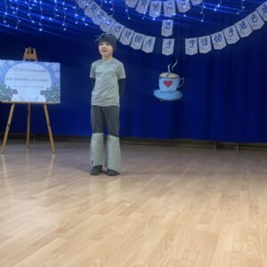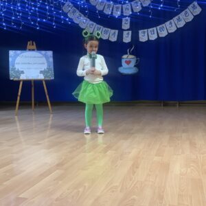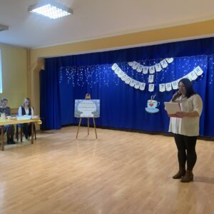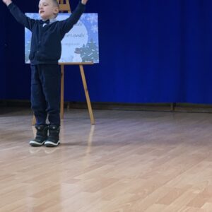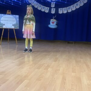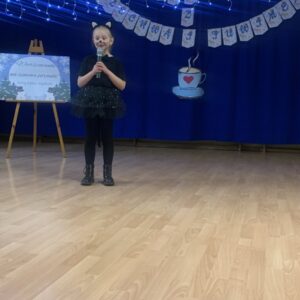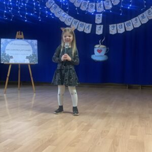 Podczas spotkania mali artyści zaprezentowali wybrane utwory, zachwycając publiczność piękną recytacją, odwagą oraz zaangażowaniem. Dzieci wraz ze swoimi opiekunami mogły w miłej i przyjaznej atmosferze wysłuchać występów przy herbatce i słodkim poczęstunku. Na sali panowała radosna, pełna życzliwości atmosfera, a każdy występ nagradzany był gromkimi brawami.