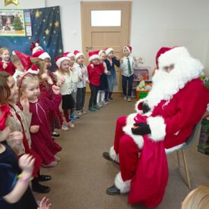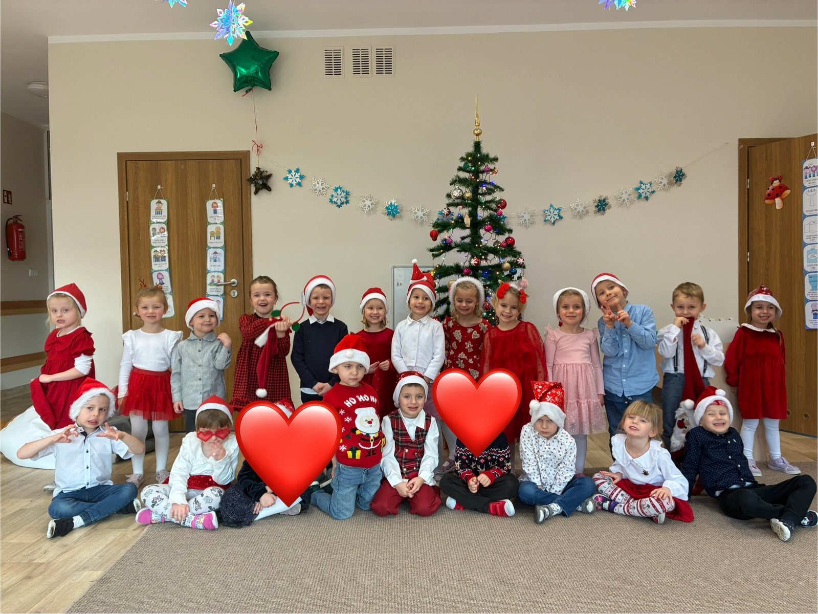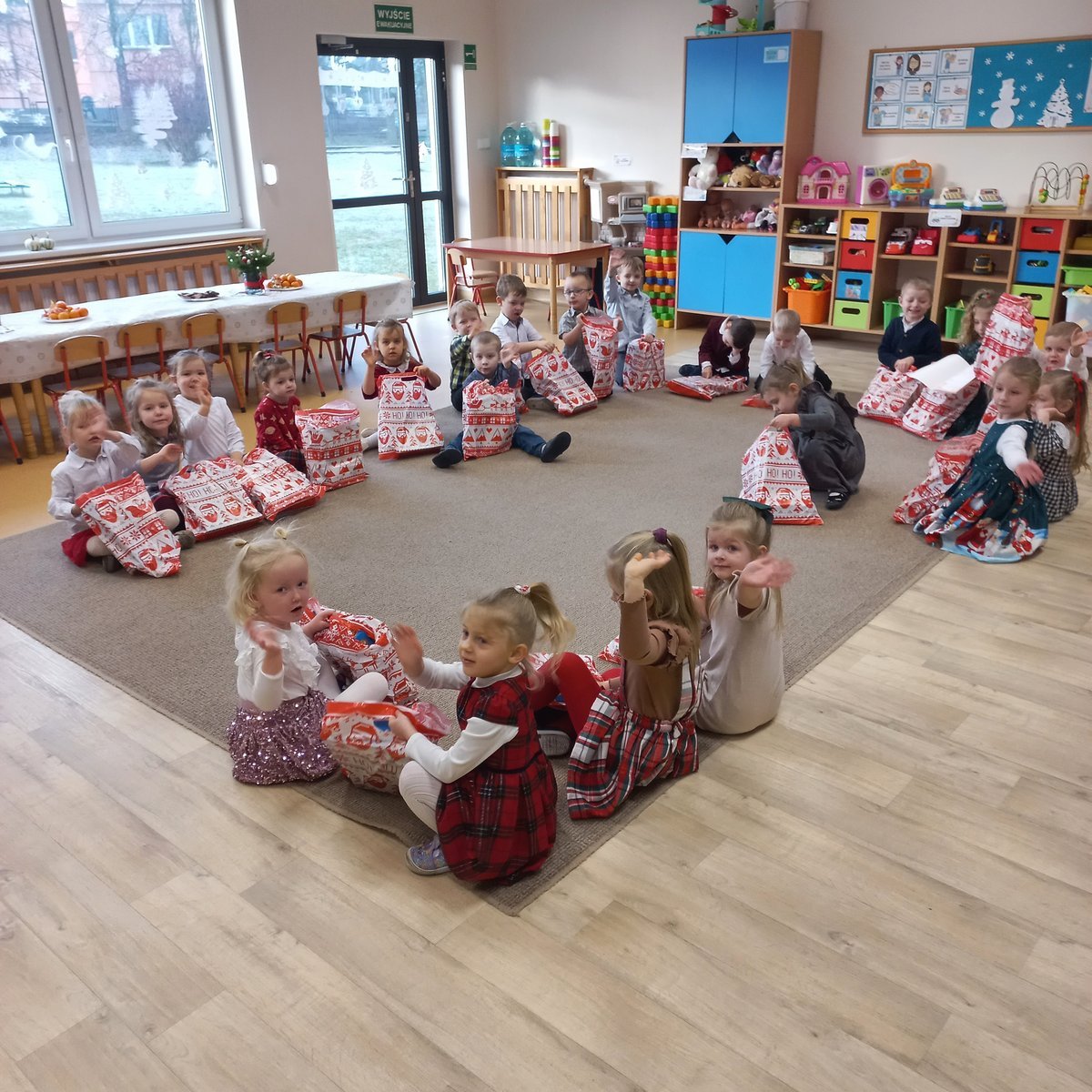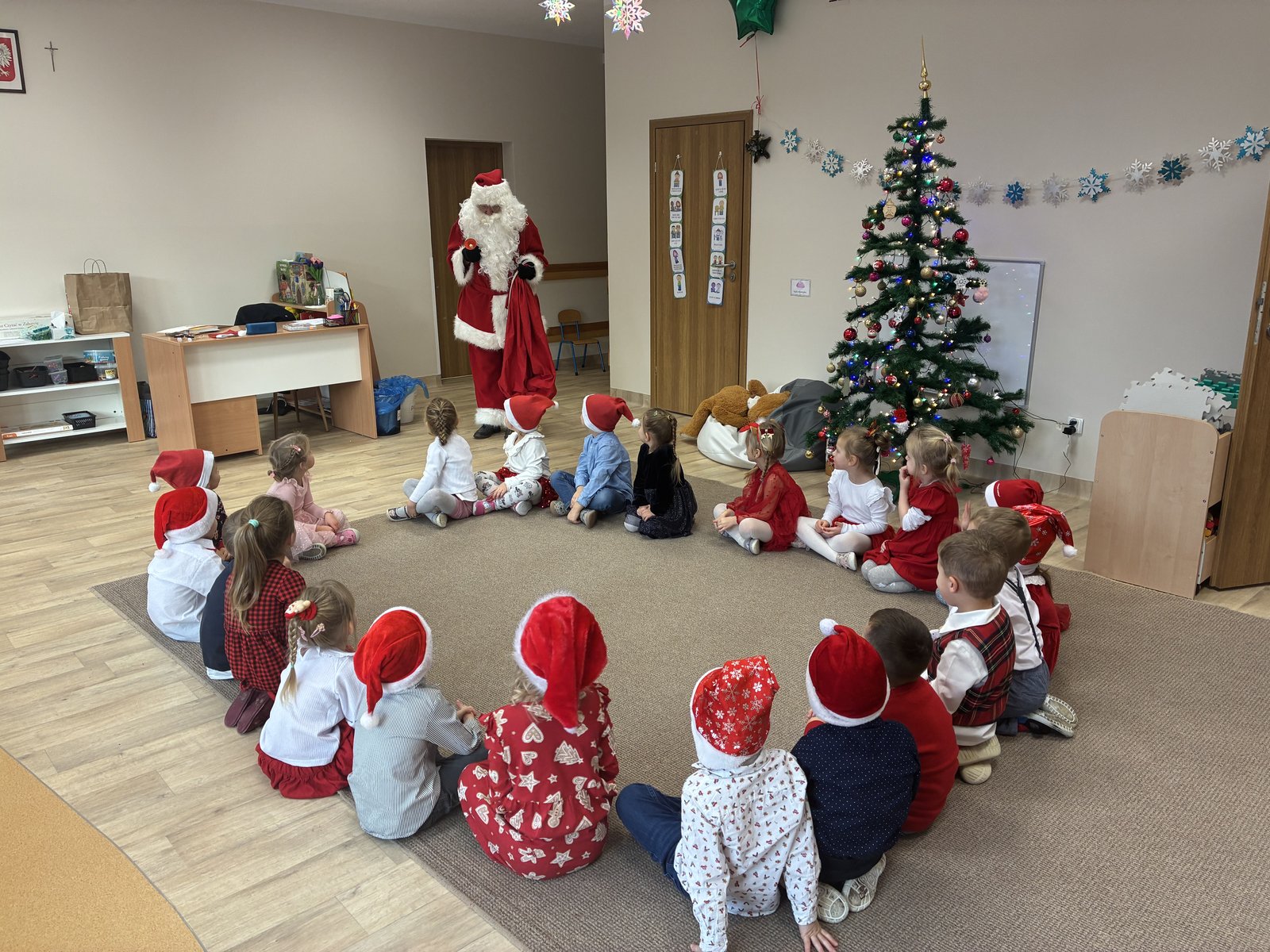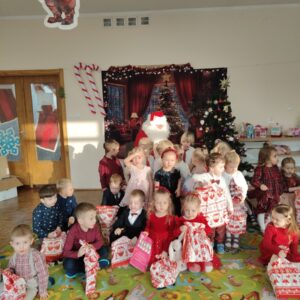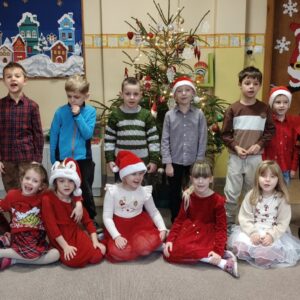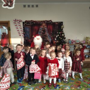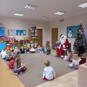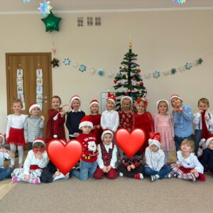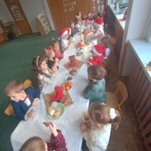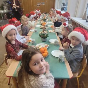 W przedszkolu od samego rana panowała wyjątkowa, świąteczna atmosfera. Sale były pięknie udekorowane, a dzieci z niecierpliwością czekały na wspólne świętowanie Wigilii. Ten dzień był pełen radości, wzruszeń i magicznych chwil.