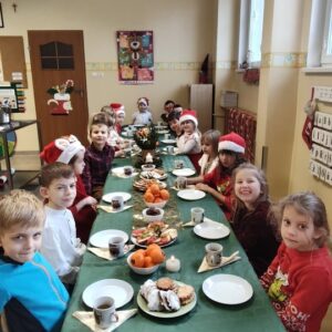 Nie zabrakło również momentu pełnego ciepła i życzliwości — dzieci dzieliły się opłatkiem, składając sobie nawzajem serdeczne życzenia. Był to czas nauki empatii, dobroci i bycia razem.